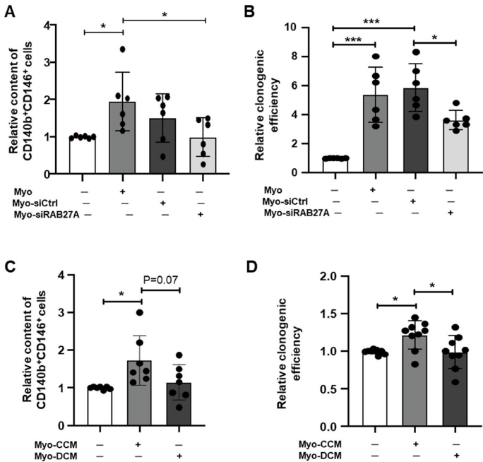 通过Rab27A基因沉默抑制子宫肌层细胞EV分泌后,eMSC的CD140b+