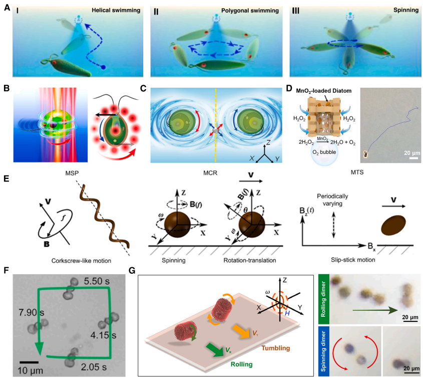 通过眼点(Eyespot)感知蓝光(400-500 nm)实现定向游动。光学镊子(OTs)可进一步操控微藻运动,如旋转藻体(6.7μm/s)用于血栓机械破碎。