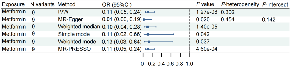 为解决这一科学问题,天津的研究团队在《Diabetology》发表了一项创新性研究。研究者采用两样本孟德尔随机化(MR)方法,通过筛选与二甲双胍10个靶点相关的单核苷酸多态性(SNP)作为工具变量,分析其对FI的因果效应。关键技术包括:从GTEx联盟获取58个靶基因的cis-eQTL数据;采用逆方差加权(IVW)作为主要分析方法;通过MR-PRESSO校正多效性;运用两步MR法评估HbA1c的中介效应;所有数据均来自欧洲人群的公开GWAS数据库。
