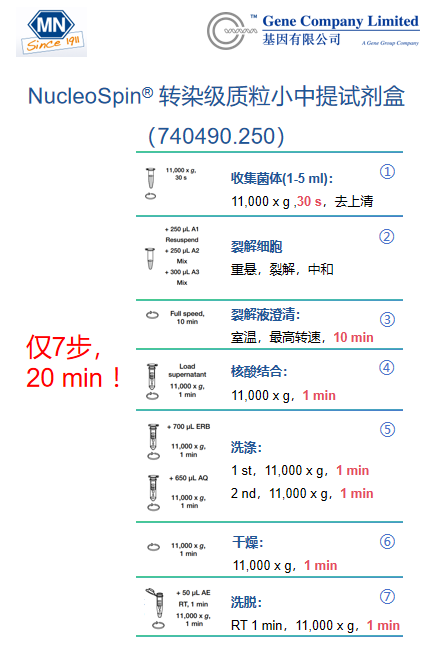 别担心,高效实验的救星来了!德国MACHEREY-NAGEL(品牌简称:MN) NucleoSpin® Plasmid Transfection-grade 质粒纯化试剂盒,专为质粒极速提取而生!