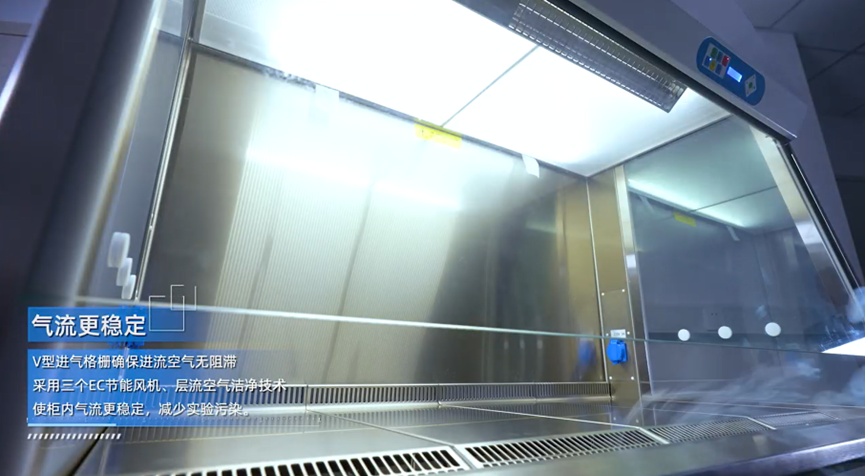 层流技术革新:Mars系列生物安全柜装配多个EC节能风机,采用V型气流入口和均流膜设计,确保气流稳定无紊流,噪音更低,前窗开口更大,防护效率超行业标准。