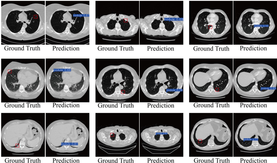 在LUNA16测试集上达到0.898精确度与0.851召回率,较基线YOLOv8s提升14.6% mAP50。 Tianjin数据集验证显示0.872召回率,证明模型对实性结节与磨玻璃结节(GGO)的泛化能力。