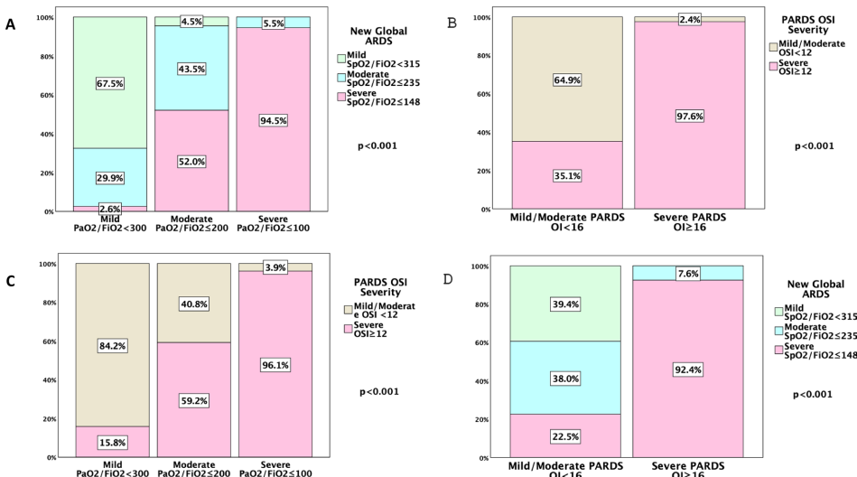 为解决这一问题,希腊克里特大学医院的研究团队开展了一项单中心回顾性队列研究,分析了174例PARDS患儿的临床数据,比较了SpO2/FiO2与PaO2/FiO2、OSI与氧合指数(OI)在严重程度分类和死亡率预测中的表现。研究结果发表于《Critical Care》,揭示了无创指标在临床分层中的局限性。