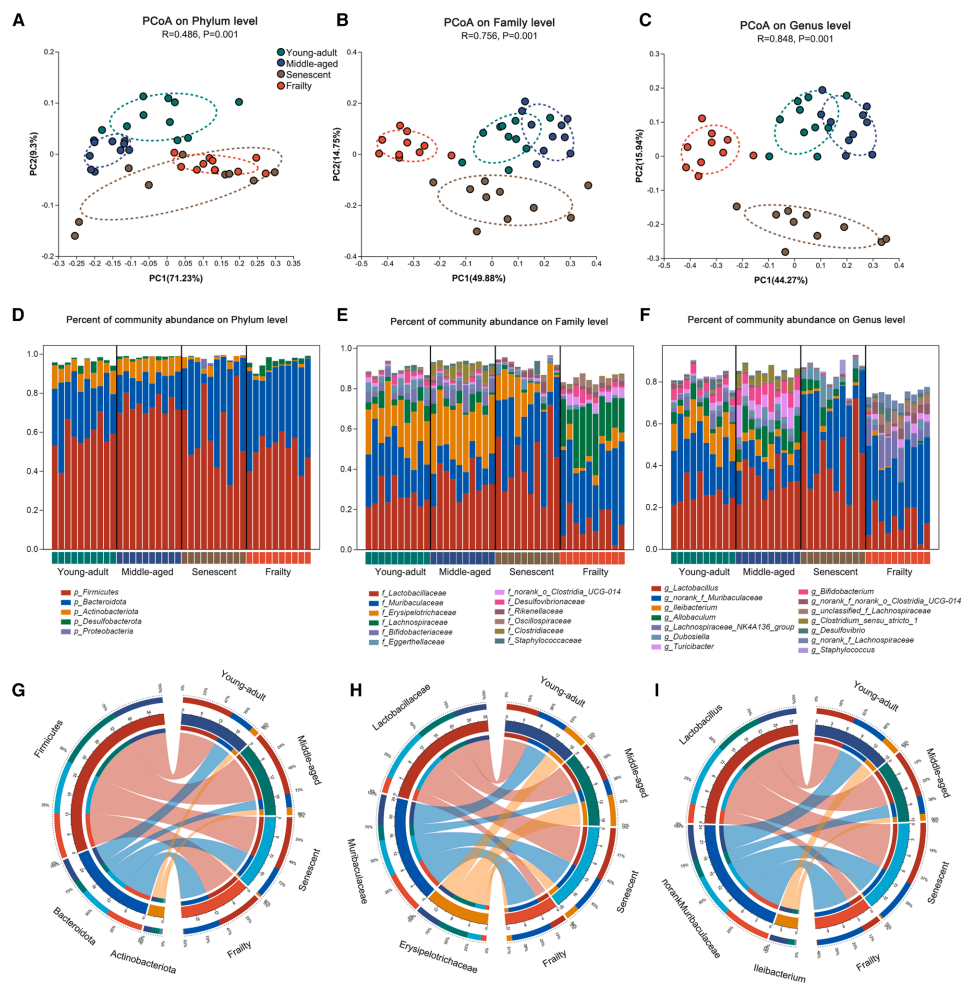 随着全球老龄化加剧,理解衰老生物学机制成为紧迫课题。在众多影响健康衰老的因素中,肠道微生物组作为"第二基因组"的角色日益凸显。既往研究虽已发现老年个体存在菌群紊乱,但关于微生物群落如何随衰老进程动态演变,特别是衰弱(frailty)这一终末阶段的菌群特征仍存在认知空白。更关键的是,菌群变化与宿主代谢、免疫功能衰退的因果关系尚不明确,这严重制约了针对性干预策略的开发。