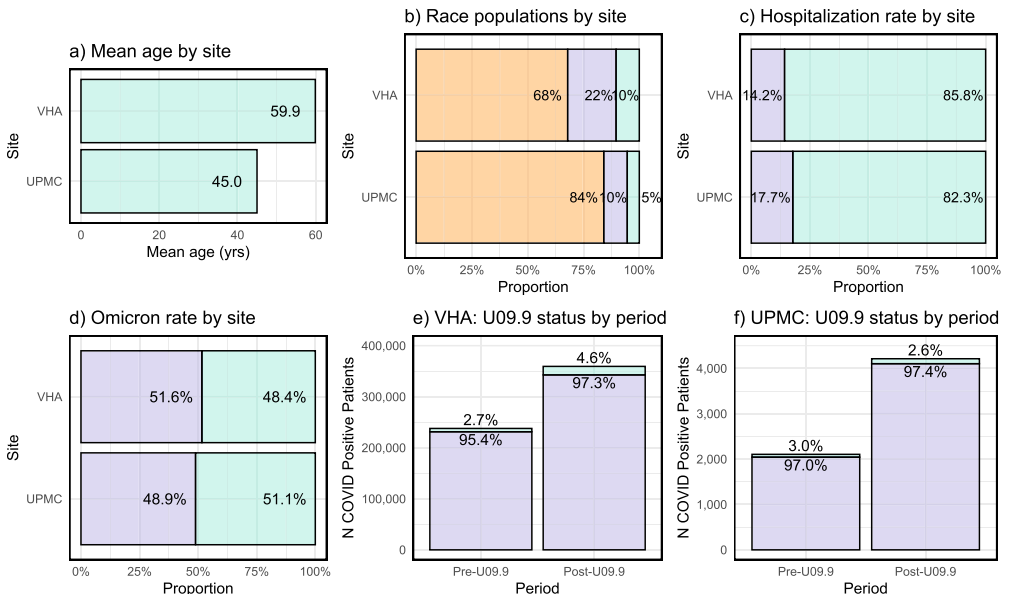 医疗资源利用的时序分析揭示了长新冠的独特模式。如图3所示,长新冠阳性患者的医疗资源使用呈现"双峰"特征:在感染当月出现高峰后,第4-5个月再次出现小高峰,且整体利用率持续高于阴性患者。值得注意的是,VHA患者的基础医疗利用率显著高于UPMC,反映了两个医疗系统服务人群的差异。研究还发现,不同SARS-CoV-2变异株引起的长新冠对医疗资源的影响模式相似,提示病毒变异可能不改变长新冠的基本病理生理机制。