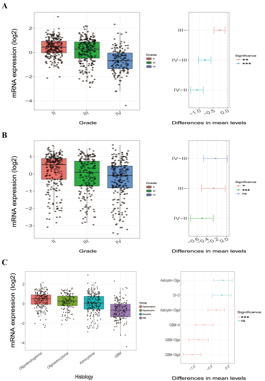 研究采用TCGA-GBMLGG、CGGA和TCGA-GBM三大数据库进行生物信息学分析,结合27例不同级别胶质瘤样本的免疫组化实验。通过生存分析、Cox回归模型评估预后价值,利用TIMER和GEPIA2平台解析免疫浸润特征,并采用GO/KEGG富集分析阐明生物学功能。