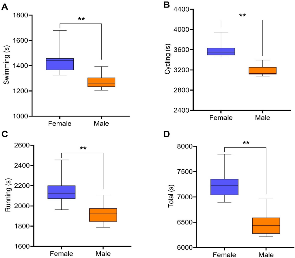 巴黎奥运会铁人三项性别差异研究:游泳、骑行与跑步表现分析