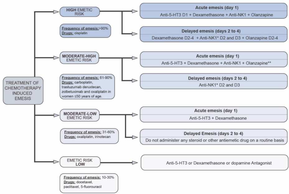 该共识创新性地将肿瘤生物学特性与传统CINV管理相结合,提出"风险分层-动态评估-多模式干预"闭环路径。未来需更多研究探索IL-33/Substance P通路靶向药物在难治性呕吐中的应用价值。
