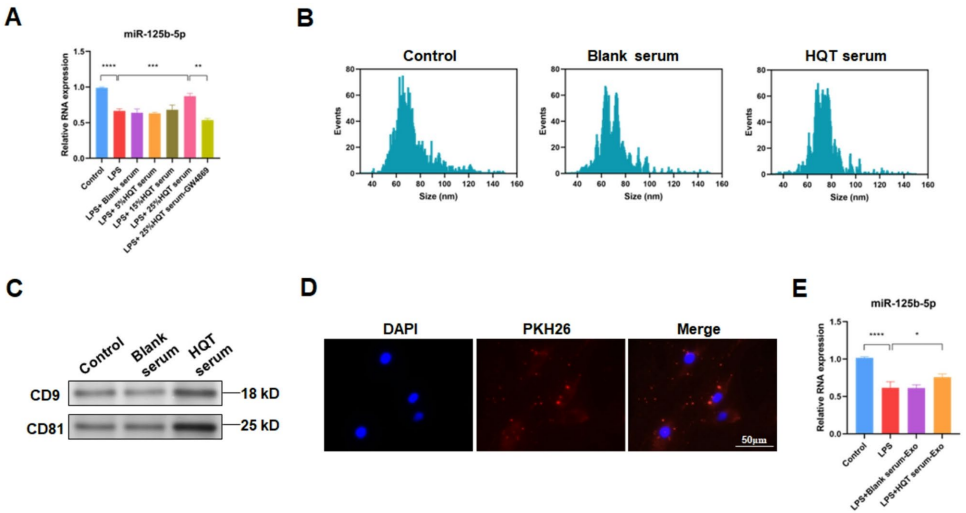 该研究首次阐明中药复方通过"ADSCs-CD63-外泌体-miR-125b-5p"轴调控RA炎症的分子机制,不仅为HQT临床应用提供理论依据,更开创性地提出:
