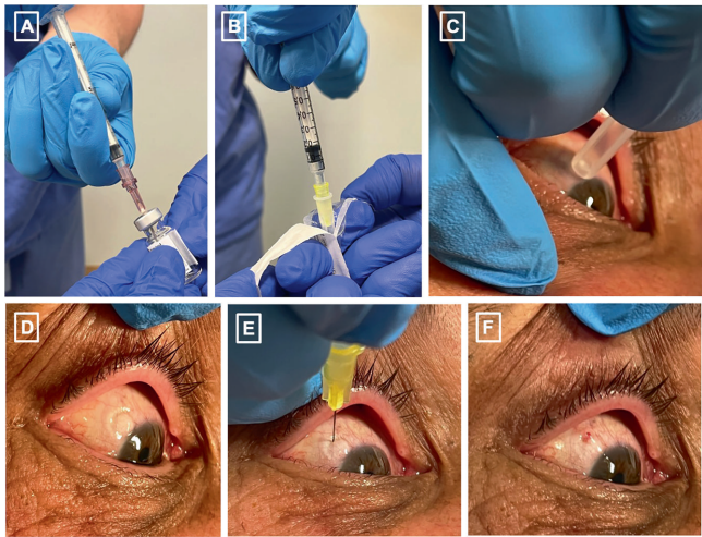 牛津眼科医院(Oxford Eye Hospital, OEH)的研究团队开展了一项历时9年的大规模临床实践研究。通过逐步优化标准操作流程,他们开创性地提出极简注射方案:仅保留结膜囊碘伏消毒和表面麻醉的核心步骤,选择性取消铺巾、开睑器等传统耗材,采用非无菌手套替代无菌手套,并创新性利用针帽(直径4.0mm)替代专用测距器标记注射位点。