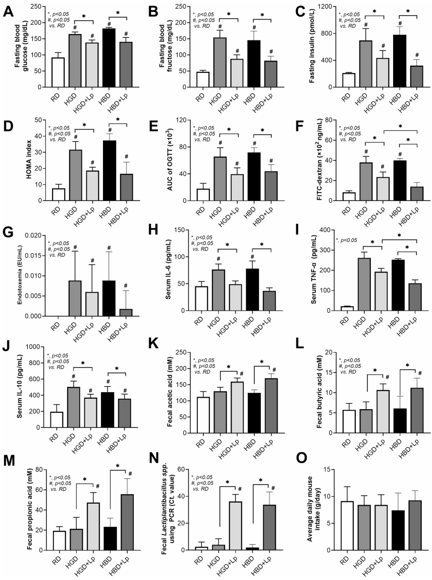 为此,泰国朱拉隆功大学医学院(Faculty of Medicine, Chulalongkorn University)的研究团队开展了一项创新研究。他们利用两种高碳水模型——纯葡萄糖饮食(HGD, C:P:F=60:25:15)和添加菠萝芝士饼干(富含水果纤维)的高碳水饼干饮食(HBD, C:P:F=70:9:21),探究本土益生菌 Lactiplantibacillus plantarum dfa1(Lp dfa1)的干预效果。研究发现,Lp dfa1 不仅能直接抑制肠肝细胞的炎症通路,还能通过"膳食纤维-菌群"协同作用特异性提升抗肥胖菌 Akkermansia 的丰度,双管齐下缓解代谢紊乱。这一成果发表于《Scientific Reports》,为益生菌在精准营养干预中的应用提供了重要依据。