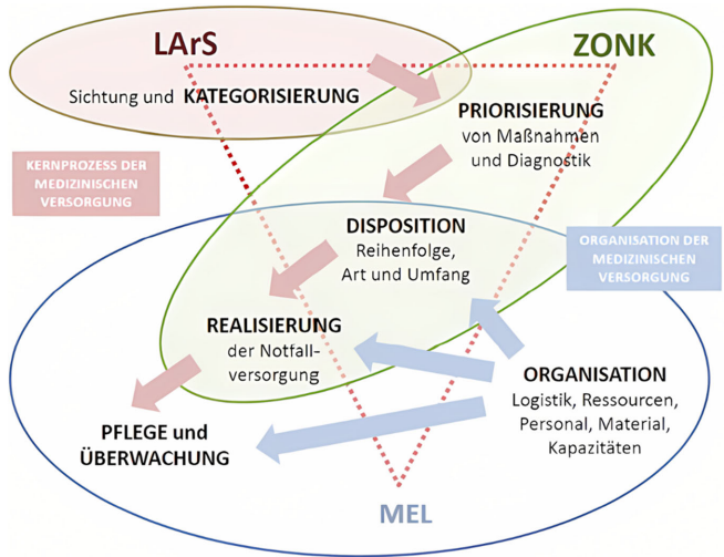德国马格德堡大学医学院(Universit?tsmedizin Magdeburg)创伤外科团队基于多年实战经验,创新性提出"中央紧急行动协调中心(Zentrale operative Notfallkoordination, ZONK)+分诊首席医师(leitender Arzt der Sichtung, LArS)"双轨制管理架构。研究团队以2024年12月20日马格德堡圣诞市场恐袭事件(共收治63名伤员)为典型案例,系统评估该模式在真实灾难场景中的应用效果。相关成果发表于急救医学权威期刊《Notfall Rettungsmed》,为全球医疗机构提供了可复制的MCI应对方案。