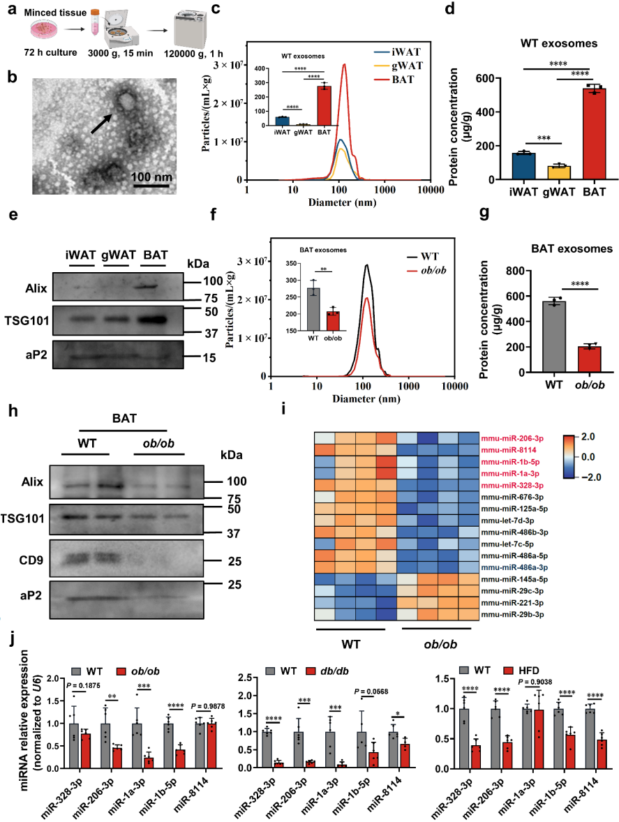 2.1 BAT是外泌体主要来源且肥胖改变其miRNA谱