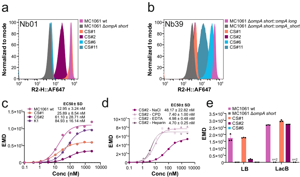 通过flycode技术从2000个候选者中筛选出Nb01(OmpA-short)和Nb39(OmpA-long),流式检测显示其对661k数据库中85,680株E. coli的覆盖率达91%。