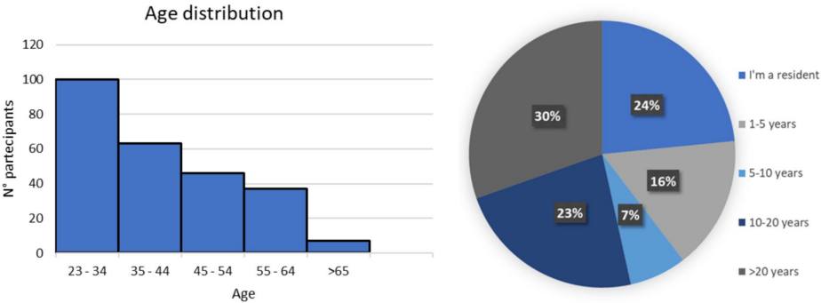 研究人员采用横断面调查设计,通过Google Forms平台向SIRM成员发放包含27个问题的匿名问卷,核心内容包括:DECT设备的地理分布、使用频率、临床应用场景以及放射科医师的知识水平。调查覆盖了来自90个城市的261名放射科医师(平均年龄41±11.7岁),其中42%任职于学术医疗中心。为确保数据质量,问卷经过多轮专家评审和预测试。