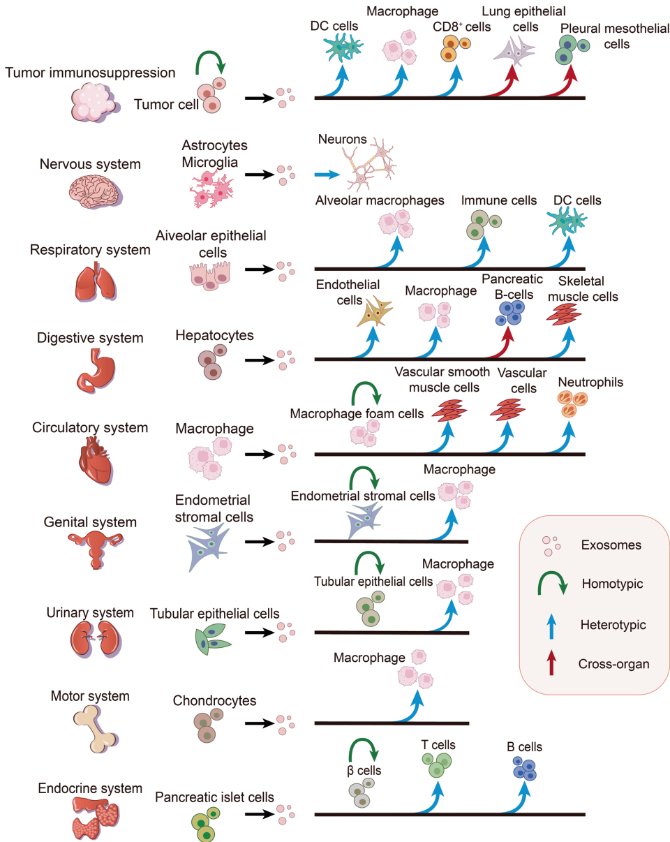 外泌体通过同型、异型、跨器官通讯重塑疾病微环境: