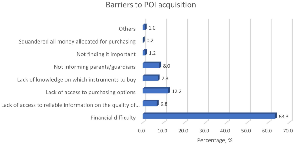 本研究针对加纳验光学生个人眼科仪器(POIs)获取率低的问题,通过多中心横断面调查揭示了关键障碍:60.2%的学生缺乏POIs,主要受财务困难(AOR:0.45)和仪器质量信息缺失(AOR:0.26)影响。研究呼吁通过成本调控和信息优化提升临床培训质量,为缩小眼科教育差距提供实证依据。