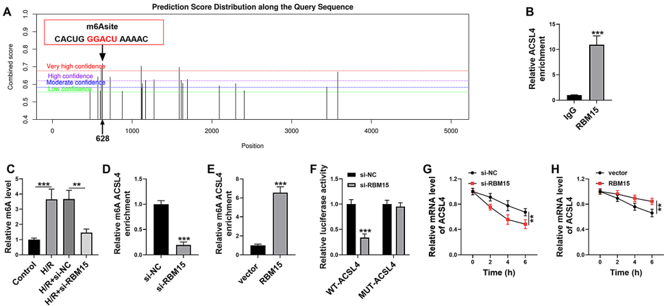 这项研究系统阐明了RBM15通过m6A依赖性机制调控ACSL4表达,进而促进心肌细胞铁死亡的分子通路。