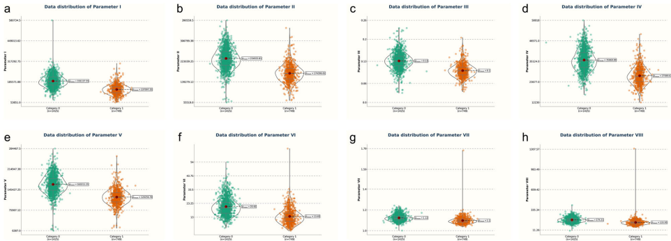 研究团队从裂隙灯图像中成功提取了8个关键形态参数:闭合区域面积、中央前房截面面积、中央前房截面与角膜缘面积比、前房角区域面积、中央前房截面中心区域面积、前房角度数、角膜带与虹膜带长度比、角膜带与虹膜带长度差。在训练集(Dataset-1)中,这些参数显示出优异的区分能力:水平光带投影图像的参数计算成功率达95%以上,准确率0.68-0.85,AUC 0.76-0.90。特别值得注意的是,直接与面积相关的参数(如前房角区域面积)表现出最高的诊断效能。