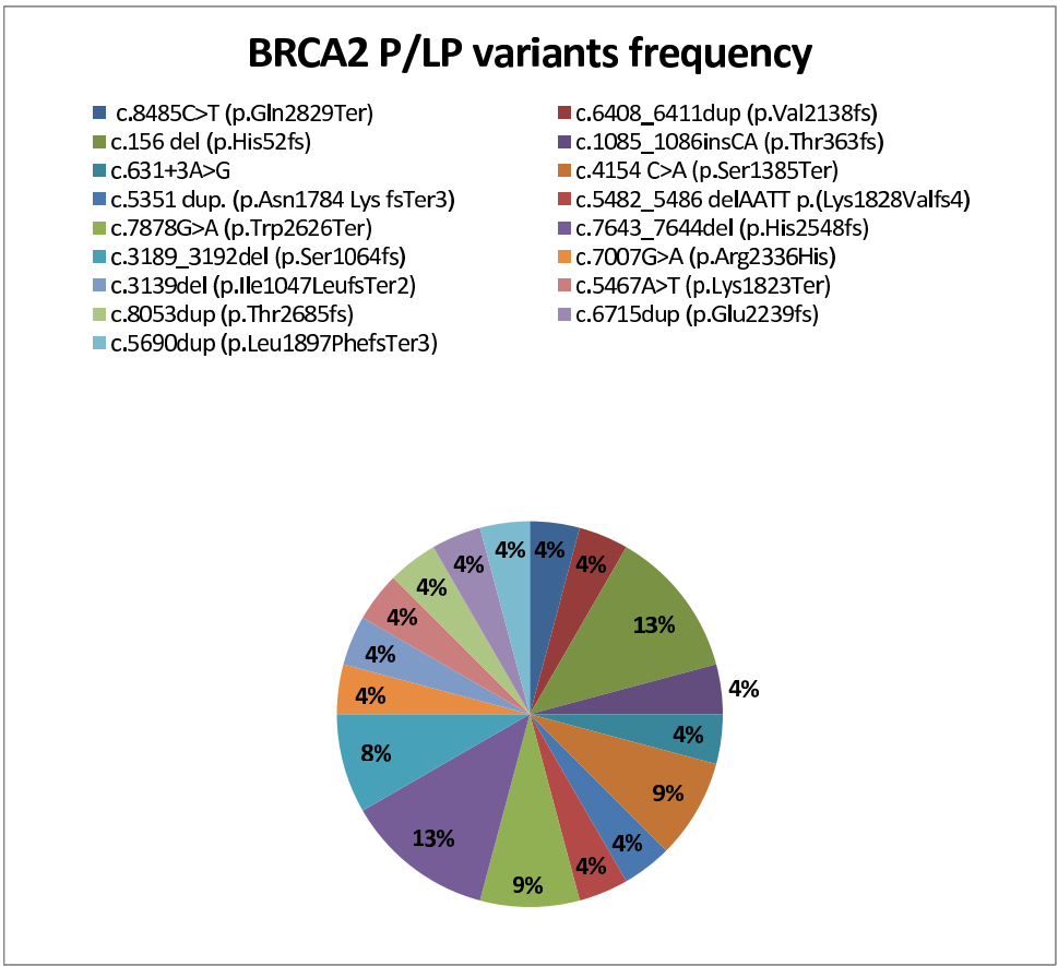 CNVs分析发现12个变异,占所有变异的18.6%,其中BRCA1的CNVs(12.9%)多于BRCA2(5.7%)。5个BRCA1 CNVs涉及关键区域如外显子2-20缺失、外显子6重复等,这些结构变异可能导致基因组不稳定性增加。此外,研究还报告了22例(4.4%)意义未明变异(VUS),其中59%有阳性家族史,这些变异的功能意义有待进一步研究。