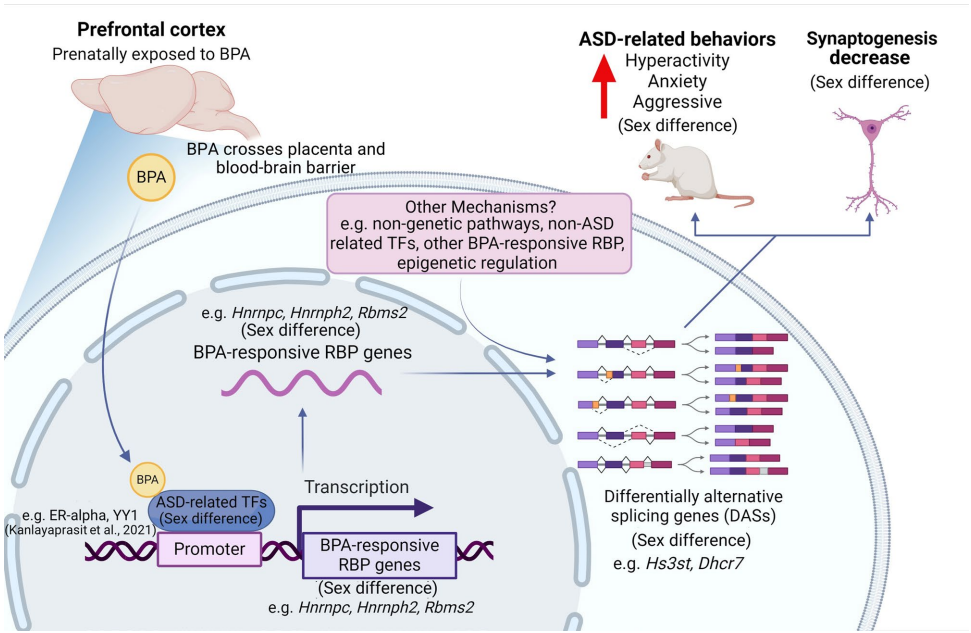 这项研究的创新性在于首次阐明了环境污染物通过调控RNA剪接过程影响神经发育的完整机制:BPA→ASD相关转录因子→RBP表达改变→关键神经发育基因的可变剪接紊乱→突触发生缺陷→性别特异性行为异常。这不仅为ASD的环境病因学提供了分子水平的解释,也为开发针对RNA加工过程的干预策略提供了新思路。