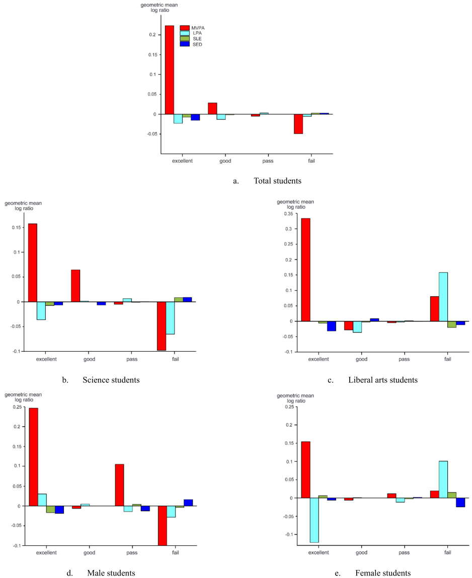 回归模型显示,ilr1MVPA对理工科男生、男生群体和总体学生的体质总分有显著正向预测作用(R2=0.311)。MVPA与坐位体前屈、立定跳远和引体向上呈正相关,与50米跑和耐力跑呈负相关;而LPA则与肺活量和耐力跑成绩正相关。