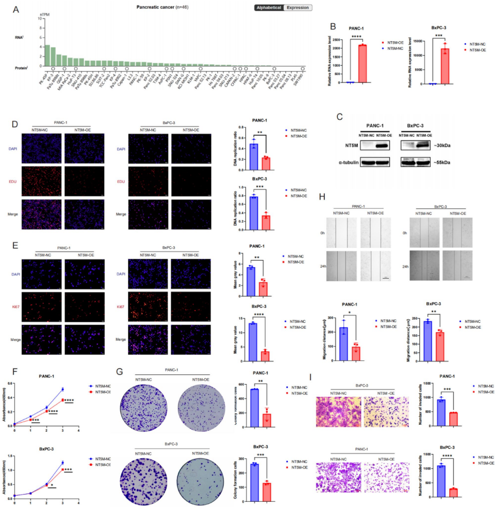 功能实验表明,过表达NT5M使PAAD细胞增殖率降低40%(EdU检测,p<0.01),侵袭能力下降55%(Transwell,p<0.001)