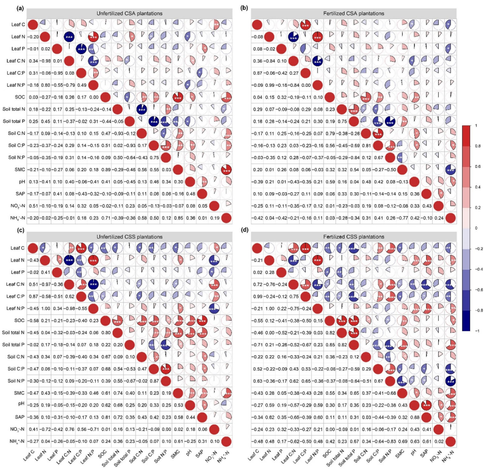 本研究针对热带茶园中碳(C)、氮(N)、磷(P)元素平衡的科学问题,通过对比施用有机肥对阿萨姆茶(Camellia sinensis var. assamica, CSA)和中国茶(Camellia sinensis var. sinensis, CSS)叶片C:N:P化学计量的影响,发现有机肥显著提高叶片N、P含量而C含量不变,揭示了土壤NH4+-N取代NO3--N成为施肥后关键驱动因子的新机制,为热带农业系统养分管理提供理论依据。
