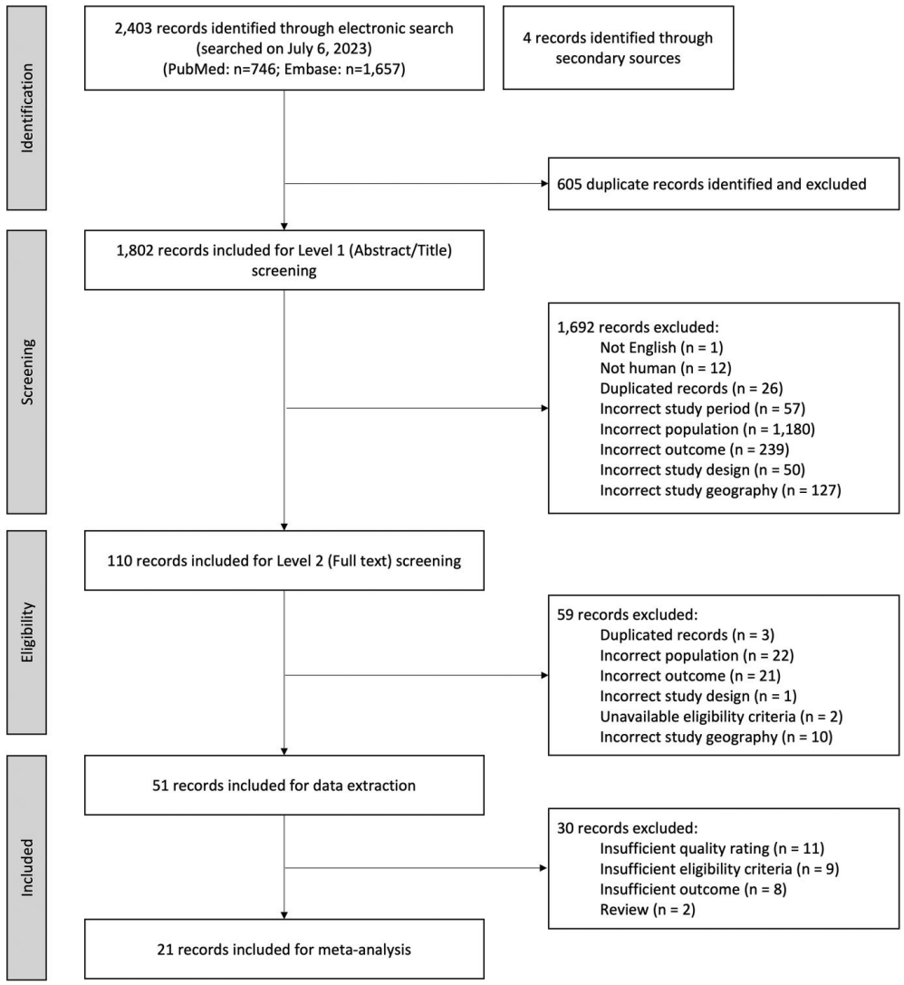 通过PRISMA流程筛选出21项符合标准的研究,涵盖16,542例≥60岁LRI患者。数据显示诊断方法以PCR为主(88.2%),研究场景涵盖医院(47.6%)和社区(52.4%)。