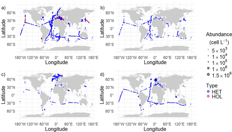 这种双阶段策略使Syracosphaera能灵活应对环境波动。例如,S. pulchra的HOL相在夏季分层水域占优,而HET相在冬季营养盐补充后爆发,形成季节性生态位分配。