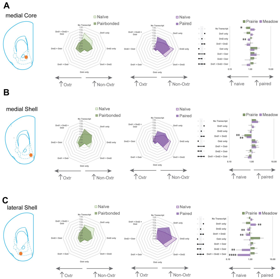 揭示田鼠伏隔核中催产素与多巴胺受体表达差异的细胞基础及其社会行为调控机制