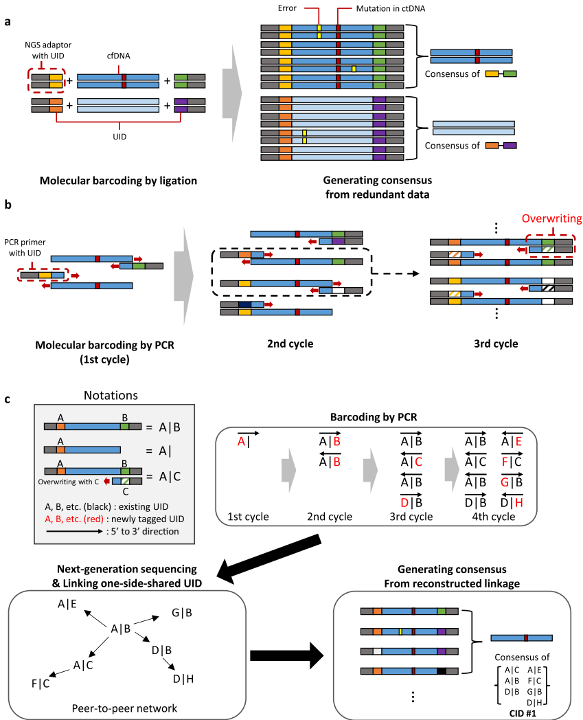 在癌症精准医疗领域,循环肿瘤DNA(ctDNA)检测犹如在浩瀚星海中寻找特定星座——尽管液体活检技术提供了非侵入性的检测途径,但ctDNA在循环游离DNA(cfDNA)中的含量往往低于0.1%,使得区分真实突变与测序误差成为巨大挑战。现有分子条形码技术虽能通过唯一标识符(UID)生成一致性序列,但基于杂交捕获的方法耗时2-3天,而PCR方法又因条形码在扩增中被覆盖而难以追踪分子起源。这种技术困境严重限制了癌症复发监测和个性化治疗的临床应用。