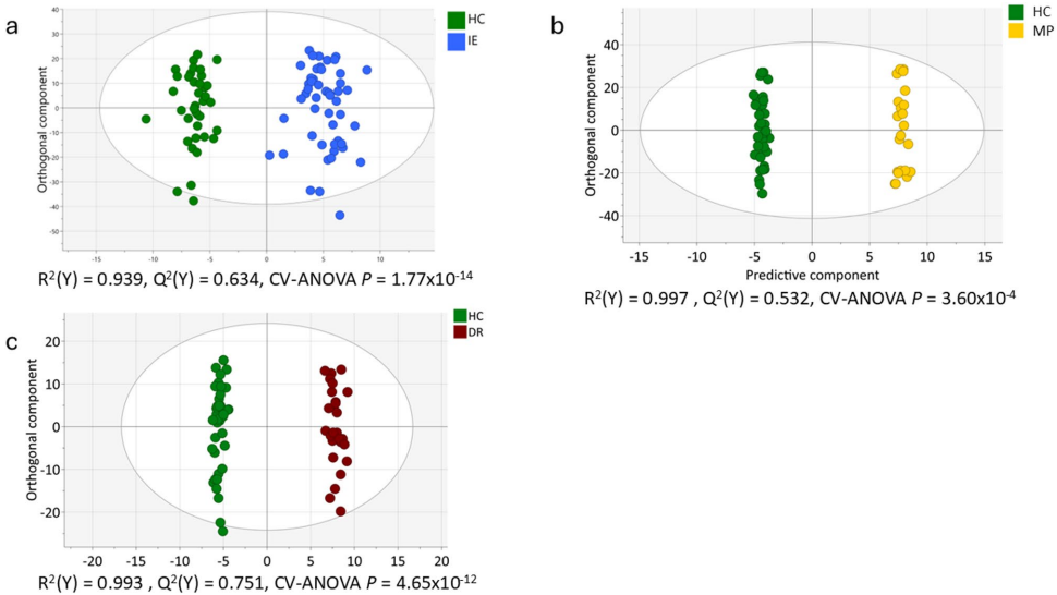 研究建立标准化犬群队列(健康组39例,IE组49例),通过液相色谱-质谱联用技术(UHPLC-HRMS)进行靶向代谢物定量和非靶向代谢指纹分析,同步采用16S rRNA测序解析微生物组成。运用正交偏最小二乘判别分析(OPLS-DA)和DESeq2算法进行多组学数据整合,并控制体况评分(BCS)、年龄等混杂因素。