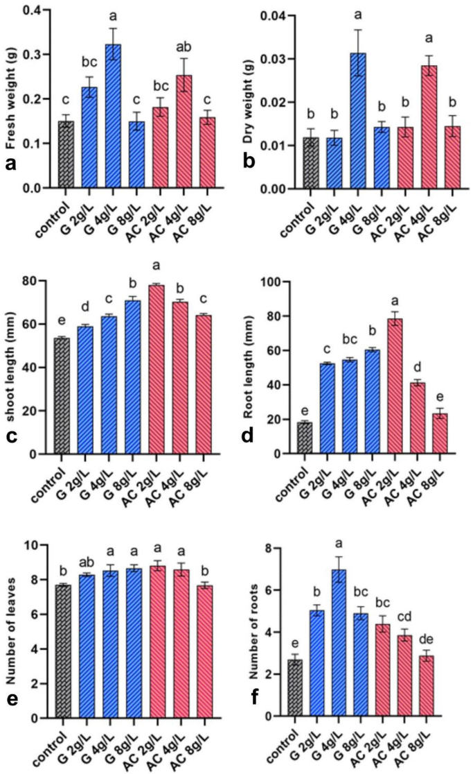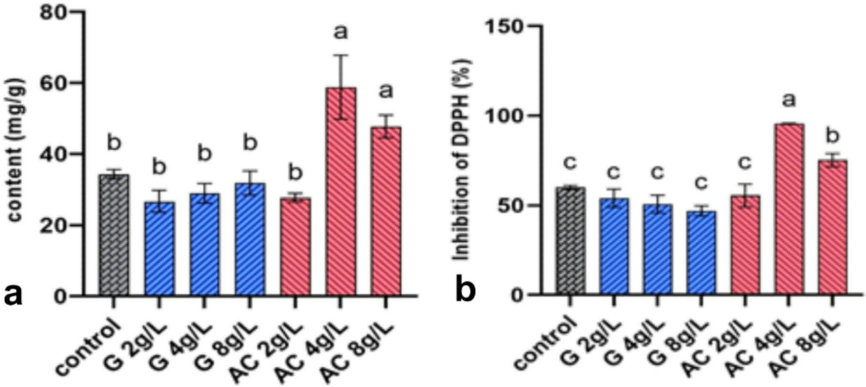 本研究针对海滨车前(Plantago maritima L.)次生代谢产物合成效率低下的问题,通过系统评估不同浓度石墨(G)和活性炭(AC)对其体外培养生长参数、酚类物质积累及抗氧化活性的影响。研究发现4 g/L AC可特异性诱导迷迭香酸(rosmarinic acid)合成,8 g/L AC显著提升总酚含量(达3.693 mg/g)和DPPH自由基清除率(50.48 μg/mL),而2 g/L G使叶绿素含量提升35%。该研究为药用植物规模化培养提供了新型碳基材料调控策略。