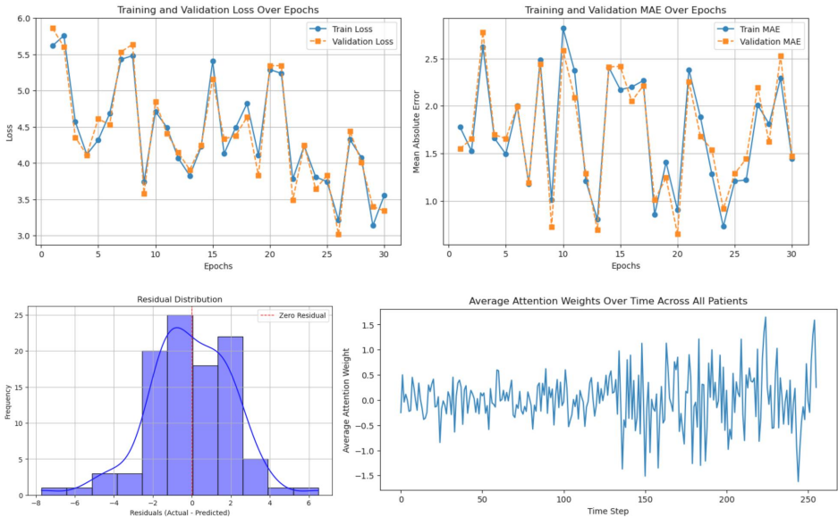 【Discussion】指出该研究的突破性在于:时序建模将LOS预测从"快照判断"升级为"动态追踪",注意力机制则破解了深度学习黑箱难题。临床实践中,当系统预警某患者可能延长住院时,医生可通过检查其高权重时间点的血小板计数或炎症指标提前干预。这种"预测-解释-干预"闭环,为DRG付费改革提供了关键技术支撑。