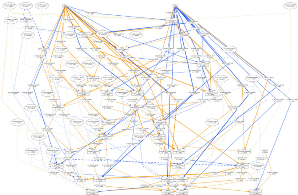 【微生物互作的路径模型】构建的路径模型(SBC=1176.99)显示Bacillin 20处理特异性影响某些菌群,如叶面喷施增加ASV2(Rosemicrobium sp.)丰度,而降低ASV55(Candidatus Xiphinematobacter)丰度。