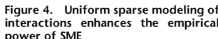 "检测功效"分析显示,99%掩模的SME在300,000样本中可检测单个SNP解释0.1%表型方差的互作(检出率85.1%),而FAME仅1%。