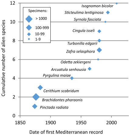 通过幼虫壳显微结构分析,首次确认加勒比海双壳类Isognomon bicolor(而非印太地区的I. legumen)的地中海分布。对Zafra属的修订解决了长达30年的分类争议,证实地中海种群实为印度洋的Z. selasphora而非新喀里多尼亚的Z. troglodytes。