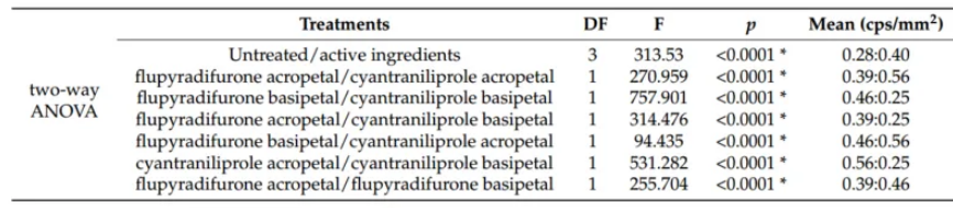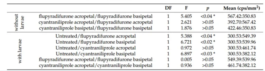 表1. 比较不同杀虫剂处理的延迟荧光值