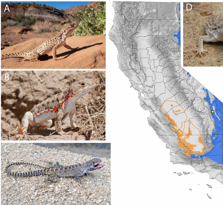 在北美西部广袤的干旱地带,豹纹蜥属(Gambelia)的三种蜥蜴——长鼻豹纹蜥(G. wislizenii)、钝鼻豹纹蜥(G. sila)和科氏豹纹蜥(G. copei)演绎着独特的生存故事。这些体型较大的蜥蜴以捕食小型脊椎动物著称,其雌性在产卵前会显现鲜艳的红橙色繁殖色,但不同物种在体型二态性、领地行为和头部形态等方面存在显著差异。尤其值得注意的是,被列为联邦濒危物种的G. sila仅分布于加州圣华金河谷,其种群数量正面临严峻挑战。由于这三种蜥蜴曾被视为同种且存在自然杂交现象,厘清它们的基因组差异对保护生物学和进化研究具有重要意义。