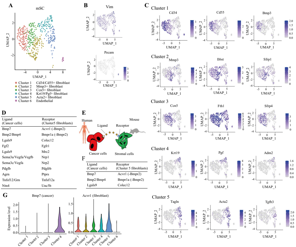 本研究针对结直肠癌(CRC)中癌症相关成纤维细胞(CAFs)的促瘤机制,通过单细胞测序和类器官共培养模型,首次揭示BMP7-ACVR1轴在CAFs与癌细胞互作中的关键作用。研究人员发现ACVR1抑制剂可显著抑制CAFs增殖并间接抑制肿瘤生长,同时证实BMP7和ACVR1高表达是II期CRC不良预后的独立预测因子,为靶向肿瘤微环境治疗提供了新靶点。