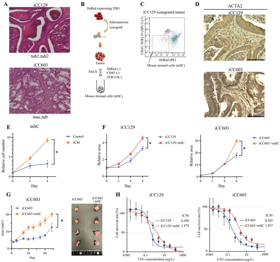 研究团队运用三大关键技术:1)建立保留患者肿瘤特性的二维类器官(2DOs)移植模型;2)通过单细胞RNA测序(scRNA-seq)解析CAFs亚群特征;3)采用直接/间接共培养体系验证细胞互作机制。临床样本来自大阪国际癌症研究所63例II期CRC患者队列。