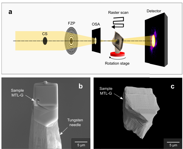 研究人员采用多尺度技术联用的研究策略:首先通过扫描电子显微镜(SEM)和透射电子显微镜(STEM)进行二维形貌观察和成分分析;随后利用聚焦离子束(FIB)制备纳米级样品;最关键的是在英国钻石光源同步辐射装置(Diamond Light Source)的I13-1线站进行X射线叠层成像实验,该技术通过扫描样品记录衍射图案,再通过算法重建出分辨率达50纳米的三维图像;最后结合流变学模型计算粘度变化。所有样品均取自Las Sierras-Masaya火山系统历史上两次普林尼式喷发(Fontana Lapilli和Masaya Triple Layer)的近源火山渣。