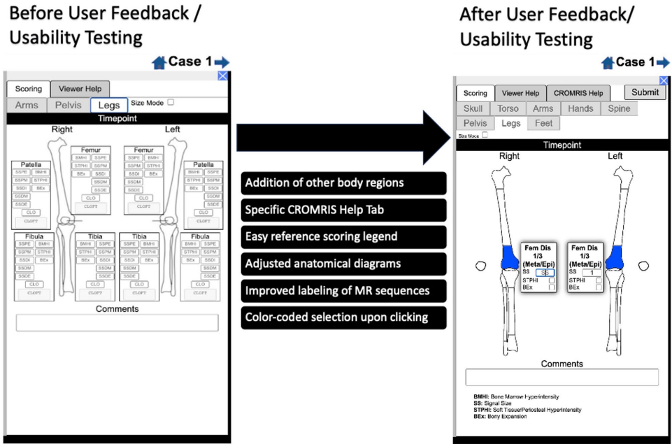 该研究首次证实网络版CROMRIS在保证信效度的同时,将单例评分时间缩短至8.4分钟,较纸质版效率提升56%。系统特有的"信号大小"分级功能(分<25%、25-50%、>50%三档)创新性地解决了儿童骨骼生长带来的评估难题。未来通过标准化培训模块的完善,该工具有望成为CNO临床试验的核心评估指标,其模块化设计思路也为其他骨骼疾病的影像评估提供了范式参考。