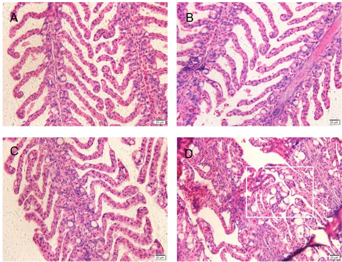 鳃组织在30 mg/L组出现明显病理改变,包括上皮增生、鳃丝粘连和离子细胞增殖。肝脏损伤呈现剂量依赖性,高剂量组出现严重空泡化和黑色素巨噬细胞中心聚集。