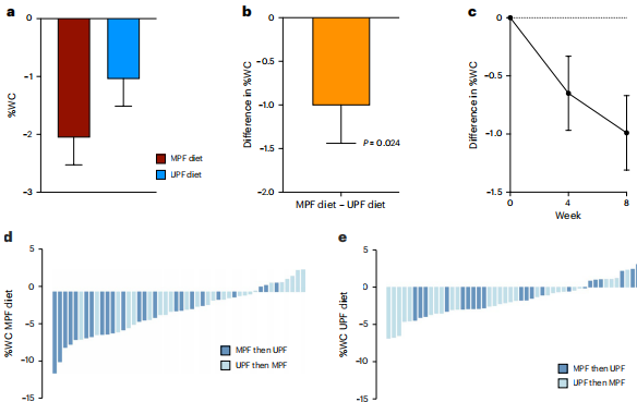 为破解这一难题,伦敦大学学院(University College London, UCL)肥胖研究中心团队设计了一项名为UPDATE的里程碑式研究。这项随机交叉试验首次在真实生活场景中,系统比较了遵循相同国家膳食指南但加工度迥异的两种饮食——超加工饮食(UPF)和最小加工饮食(Minimally processed food, MPF)——对体重和代谢健康的差异化影响。研究结果发表在顶级医学期刊《Nature Medicine》上,为食品加工度在公共健康中的角色提供了决定性证据。