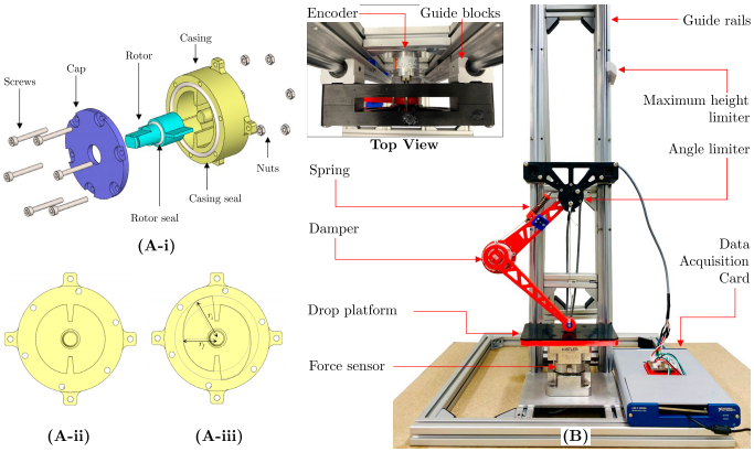 英国帝国理工学院(Imperial College London)的Shehara Perera团队从人类膝关节的生物力学特性中获得灵感,发现肌肉收缩随屈曲角度增加会提升关节阻尼特性。基于这一发现,他们设计出革命性的角度依赖可变阻尼关节,通过旋转叶片阻尼器中精密的间隙渐变结构(0.5-5mm变化范围),实现了阻尼系数随角度非线性调节的仿生特性。这项发表于《Scientific Reports》的研究表明,该设计可使理论峰值力降低48%,实验验证中实际减震效果达10%,为机器人硬件设计开辟了新路径。
