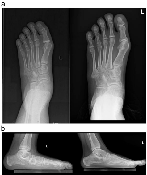 通过FHSQ量表发现,术后患者在鞋履适应性(p=0.002)、总体足部健康(MD=2.46±0.72)等方面显著提升。70.4%患者术前存在步态障碍,术后仅11.1%残留美观问题,且无严重并发症。