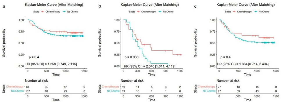 化疗获益分层:RACIM高风险组患者接受辅助化疗后生存显著改善(P=0.036),而传统高风险病理特征组无此差异