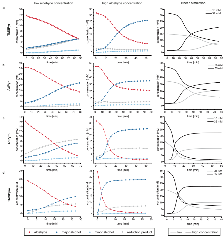 来自德国马克斯·普朗克研究所(Max-Planck-Institut)的Oliver Trapp团队在《Nature Communications》发表的最新研究,通过多技术联用揭开了这一"化学圣杯"的分子机制。研究人员创新性地采用原位高分辨质谱(HRMS)实时追踪反应中间体,结合动力学分析和反应网络模拟,首次证实了瞬态锌半缩醛配合物才是真正的催化活性物种。这一发现不仅解决了长期存在的机理争议,更建立了清晰的结构-活性关系,为理性设计自催化系统提供了"分子蓝图"。